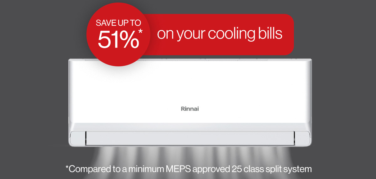 Save up to 51%* on your cooling bill this Summer with a Rinnai Split System Air Conditioner