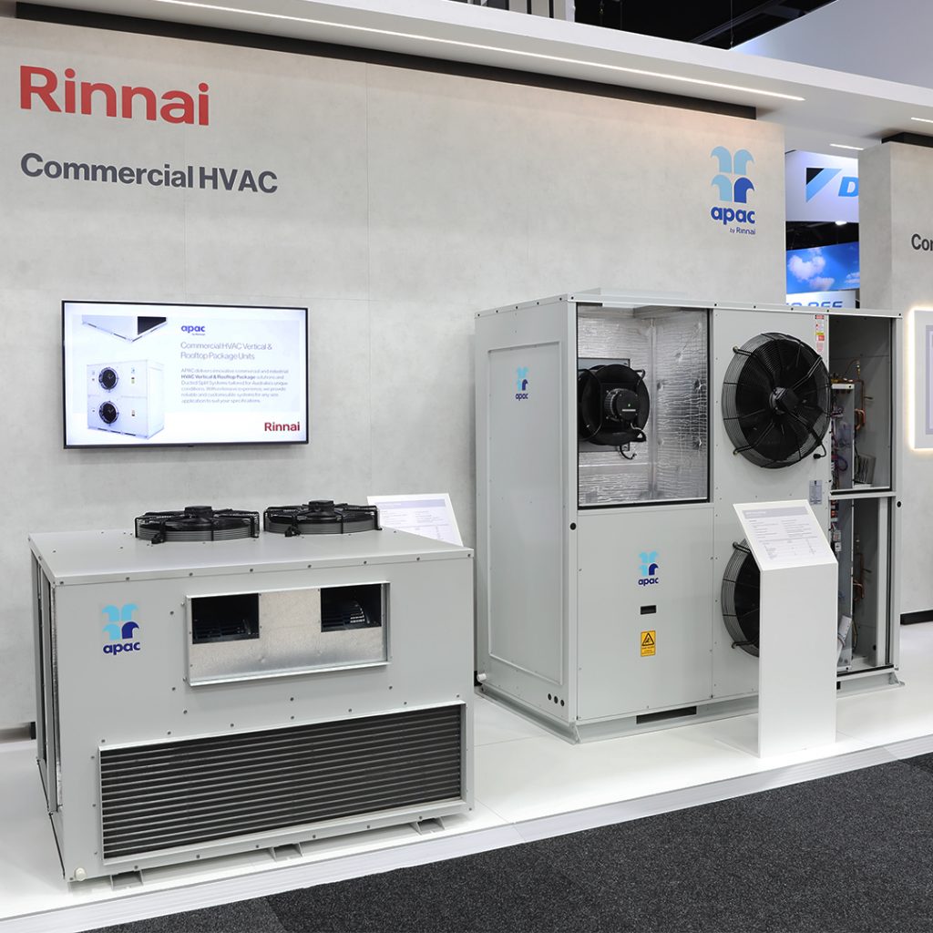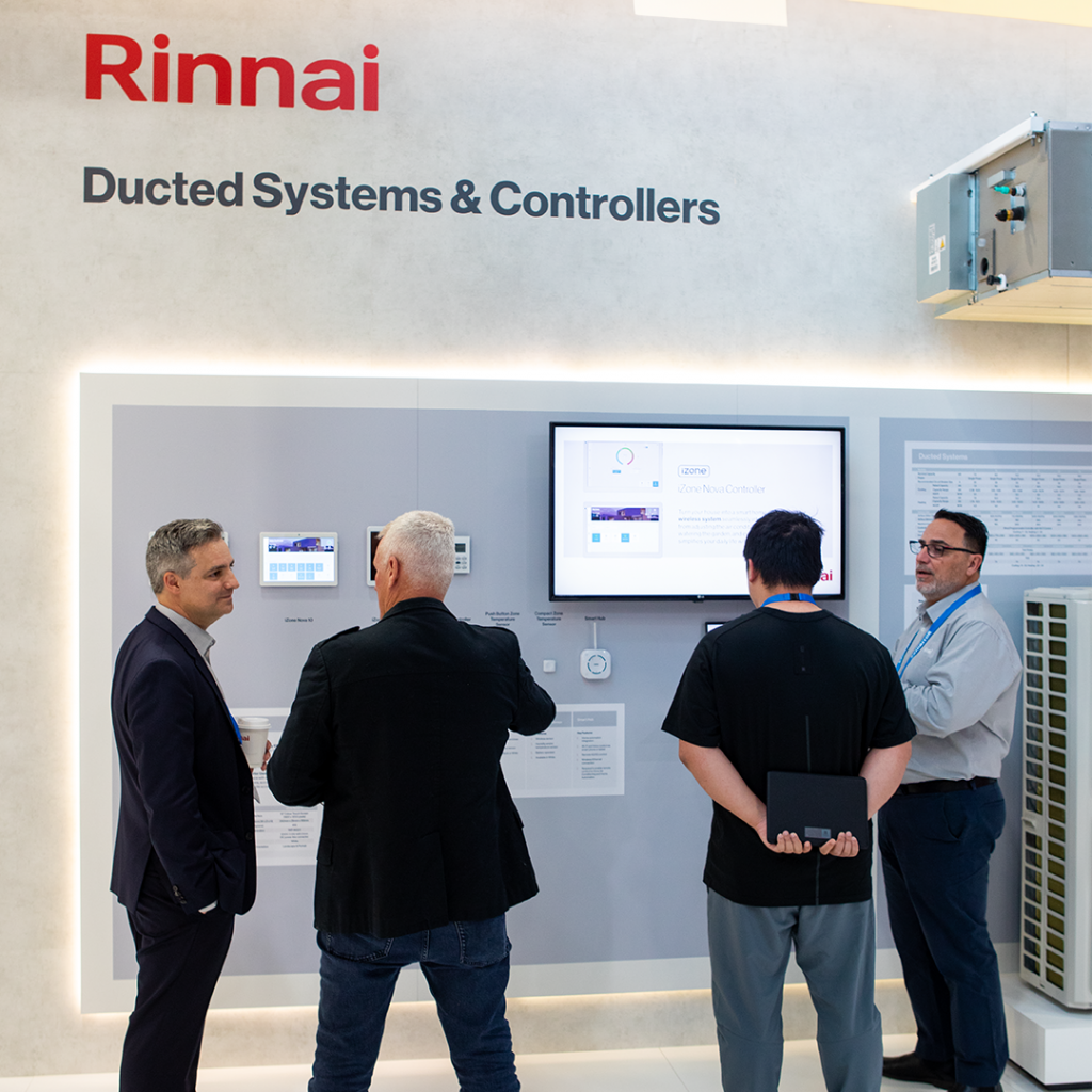 Rinnai showcased an impressive lineup of products from our HVAC, Climate Controller and Hot Water brands, including Rinnai, APAC, Brivis and iZone. At the show, our residential climate control offerings featured the Rinnai Split, Multi Split and Ducted Air Conditioners and the new Rinnai Home & iZone Nova Smart Home Climate Control Systems. For commercial applications, we presented the new APAC Global Rooftop Unit and custom Vertical Package Unit. In hot water solutions, the spotlight was on our residential and commercial hot water heat pump ranges and the new Rinnai Efinity Electric Continuous Flow.