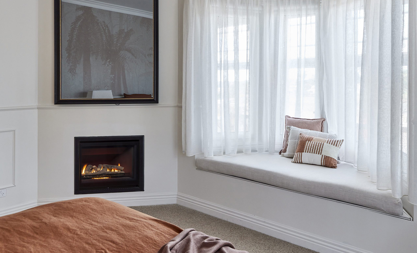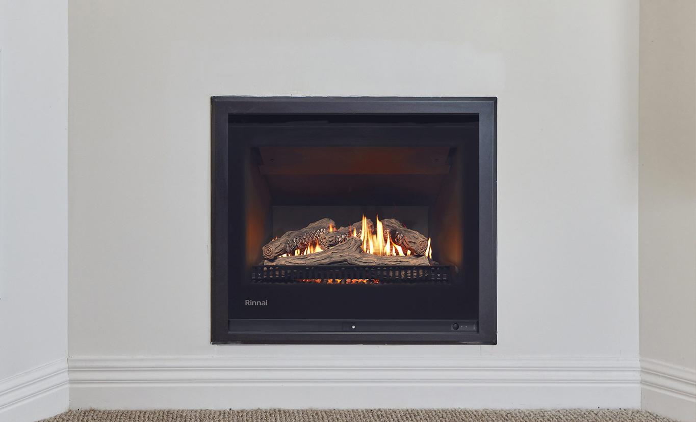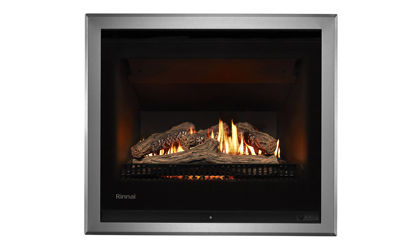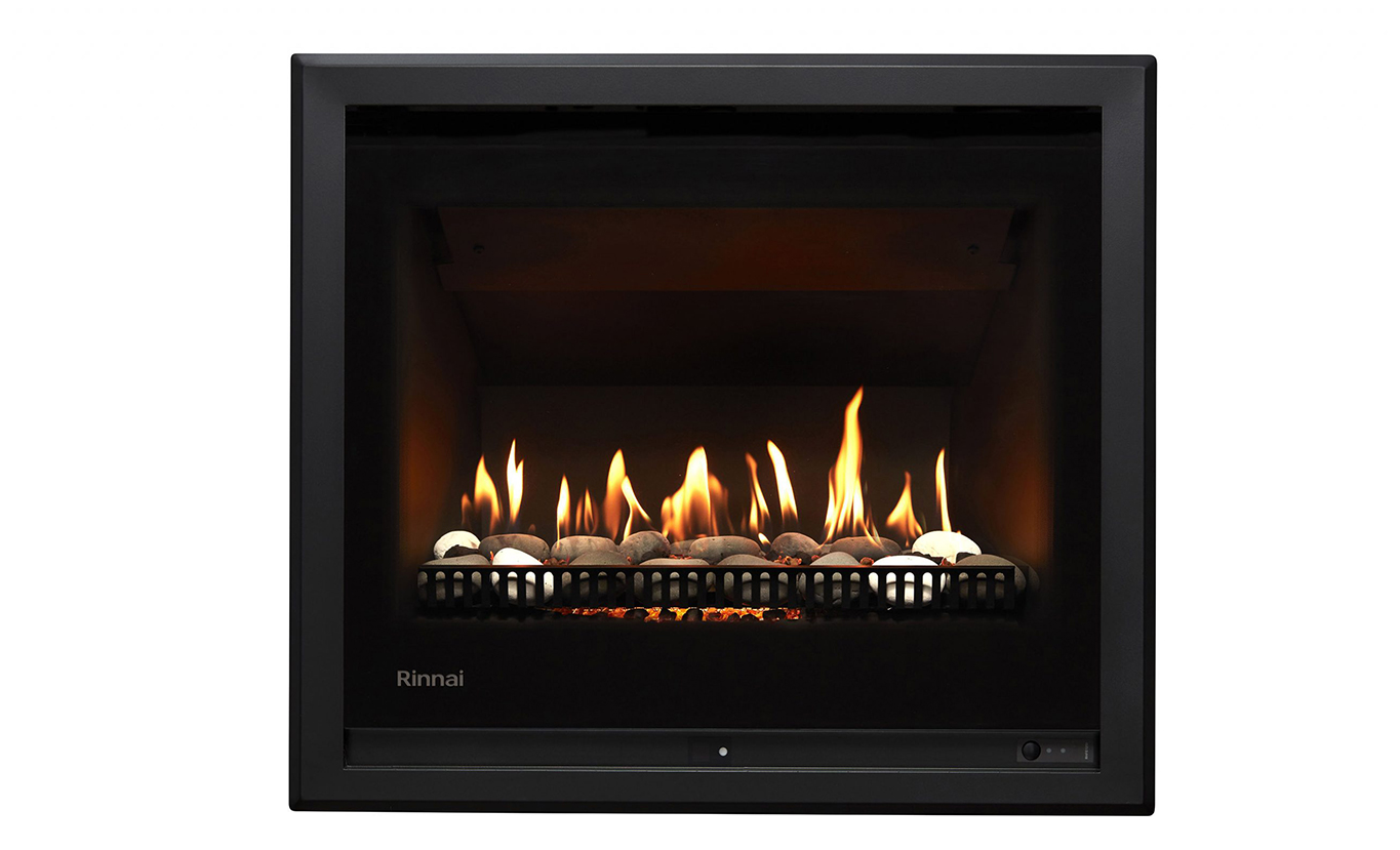 Rinnai's Gas Fire range is all about design – featuring a wide viewing window, minimalist frames, and a roaring flame pattern.